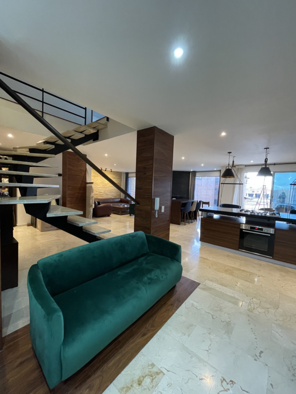 This luxurious duplex penthouse is perfect for those who want to live in style and comfort. The open-plan living area on the lower floor is perfect for entertaining guests, while the upper floor offers a private retreat with a spacious terrace and breathtaking views of the city. You can enjoy a cup of coffee or a glass of wine while taking in the panoramic view of Bogota's skyline.